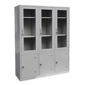Tủ hồ sơ 3 buồng TU09K7CK buồng trên gồm 3 khoang cánh kính mở sử dụng khóa riêng biệt, trong mỗi ngăn có 2 đợt cố định. Buồng dưới gồm 3 ngăn cánh sắt mở, mỗi ngăn 1 khóa giúp tài liệu luôn được an toàn.
